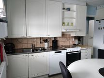 Keittiön varusteet: Jääkaappi, liesi, liesituuletin ja astianpesukone