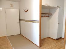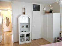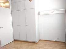 Toisessa makuuhuoneessa on kaapit ja toisessa on vaatehuone.