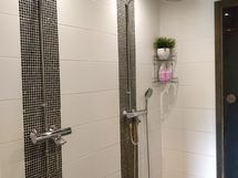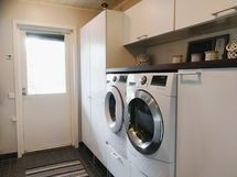 Saunaosasto, jossa on kaksi suihkua, tarjoaa rentouttavia hetkiä arjen keskellä. Kodinhoitohuoneessa on modernit ratkaisut pyykkihuoltoon, ja sieltä on käynti suoraan ulos, mikä helpottaa arjen askareita. Talon yhteydessä on myös autotalli.