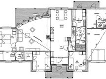 Talon avara olohuone kaarevine ikkunaseinineen luo valoisan ja kutsuvan tunnelman. Toimivassa keittiössä on runsaasti säilytystilaa ja modernit kodinkoneet. Talossa on kolme makuuhuonetta, joista päämakuuhuoneen yhteydessä on oma wc-tila ja monikäyttöinen syvennys, joka voi toimia pukeutumis- tai työtilana.