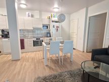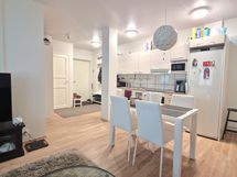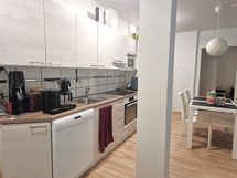 Liesi: induktio. Työtasot: laminaatti. Varustus: liesituuletin, astianpesukone. Tupakeittiö. Varustus: paikka jääkaapille