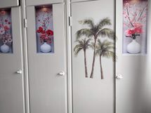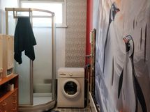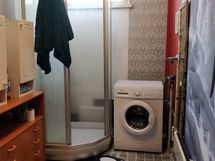 Asunnon kylpyhuoneessa on suihkukaappi sekä tila pyykinpesukoneelle.
