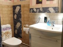 Kakkosasunnon kylpyhuone on laatoitettu ja siellä on wc, suihkukaappi sekä pieni infrapunasauna. Erillisten WC:n lukumäärä: 2. Erillisen WC:n varusteet: WC-istuin, pesuallas, peilikaappi, allaskaappi ja bidee-suihku. Erillisen WC:n kuvaus: WC-tila on remontoitu muutama vuosi sitten.