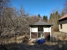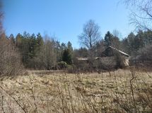 Pihapiirissä on ulkorakennus ja pieni vanha peltopalsta.