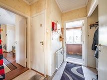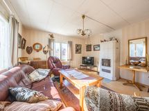 Alakerrassa veranta/sisäänkäynti sekä eteinen. Yläkerta jossa huone/avokeittiö, makuuhuone sekä wc. Huoneissa muovilattiat ja seinät tapettia ja maalia.