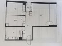 - Taloyhtiössä ei hissiä, ensimmäiseen kerrokseen muutama porras, asunnossa ovenaukot voi olla ahtaita pyörätuoleille.