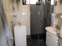 - Suihkukaappi, Pesukone, Laattaseinä, Peilikaappi, Allaskaappi, Laattalattia, Lattialämmitys, Avattava ikkuna