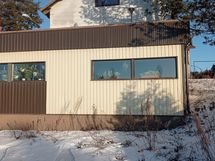 Omakotitalo jossa runsaasti autotalli ja varastotiloja.