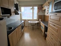 Jääkaappi/pakastin, liesi:keraaminen, uuni, liesituuletin, astianpesukone. Lattia laminaatti, seinät maalattu.