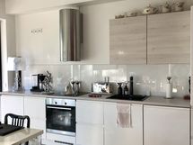 - Tilaa isolle ruokapöydälle, Halogeenivalot, Astianpesukone, Integroidut koneet, Liesituuletin, Liesi tai uuni erikseen, Induktioliesi, Jää-pakastinkaappi, Pakastin, Paljon kaappitilaa, Paljon työskentelytilaa, Laminaattitasot