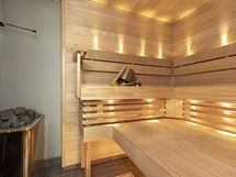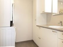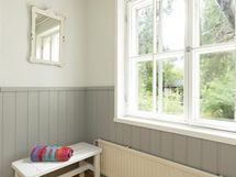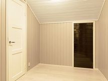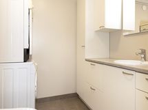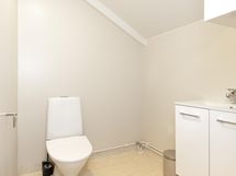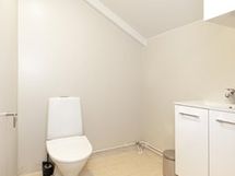 Sauna, puukiuas, kylpyhuone, erillinen wc, suihku, suihkuseinä, peilikaappi Toinen WC, kaapit, allaskaappi, pesukoneliitäntä, lattialämmitys Alakerran WC, pesuhuone, sauna, kiinteät valaisimet.