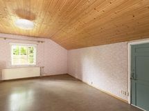 Keittiö: Parketti, puolipaneeli ja tapetti. Olohuone: Parketti, puolipaneeli ja tapetti. Makuuhuone 1: Parketti, puolipaneeli ja tapetti. Makuuhuone 2: Parketti, puolipaneeli ja tapetti. Makuuhuone 3: Muovimatti tapetti (koko yläkerta). Sauna: Laatta, puupaneeli. Kylpyhuone: Laatta.