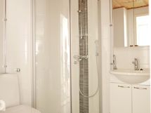 - Varustus: suihkuseinä, pesukoneliitäntä, lattialämmitys, wc-istuin, suihku, peilikaappi, kiinteät valaisimet, kylpyhuonekaapisto, asennettuja erikoisvarusteita.