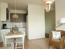 - Liesi: induktio. Työtasot: laminaatti. Kylmäsäilytys: jääkaappi/pakastin. Varustus: astianpesukone, kiinteät valaisimet, liesituuletin / hormi.