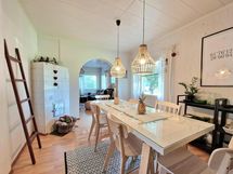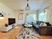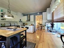- Sähköliittymä. Muuta kauppaan kuuluvaa: Kiinteät valaisimet, sälekaihtimet, varaava olohuoneen tulisija, lämminvesivaraaja, matontamppausteline, istutukset. Keittiön saareke neuvoteltavissa.