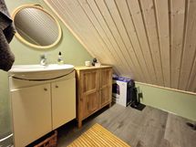 - Varustus: suihkukaappi, lattialämmitys, suihku. Erillisen WC:n kuvaus: Yläkerrassa.