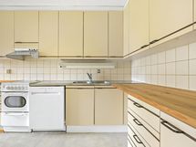 - Jääkaappipakastin, keraaminen liesi, liesituuletin, astianpesukone, kaapistot, kiinteät valaisimet.