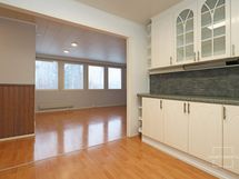 Liesi: keraaminen. Työtasot: laminaatti. Kylmäsäilytys: jääkaappi/pakastin. Varustus: astianpesukone, kiinteät valaisimet, liesituuletin / hormi.