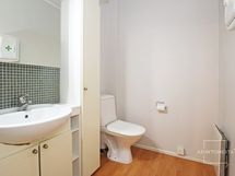 Varustus: suihkukaappi, pesukoneliitäntä, suihku, peili, kiinteät valaisimet. Erillisen WC:n kuvaus: Pesuallas, allaskaappi, peili, wc-istuin. Lattia: laminaatti. Seinät: maalattu.