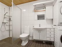 - Pesutilojen varusteet: WC-istuin, suihku, pesukoneliitäntä ja lattialämmitys. Erillisten WC:n lukumäärä: 1. Erillisen WC:n varusteet: WC-istuin, peilikaappi, bidee-suihku, lattialämmitys ja pesuallas.
