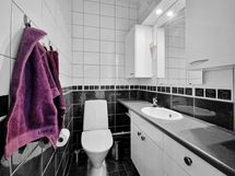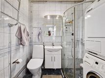 - Kylpyhuone, suihku/suihkukaappi, peilikaappi, pesukoneliitäntä, kylpyhuonekaapisto, kiinteät valaisimet, kuivauspatteri, erillinen wc