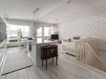 Tämä tilava koti tarjoaa laadukasta asumista kauniilla Saimaa näkymällä. Sisääntulokerroksessa on suuri yhtenäistä tilaa oleva olohuone ja keittiö, joka on uusittu muutama vuosi sitten. Laadukkaat integroidut Miele kodinkoneet tekevät keittiöstä kotikokin unelman. Suuri terassiparveke avautuu koko huoneiston leveydeltä.