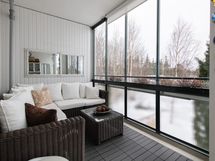 Muuta kauppaan kuuluvaa: sälekaihtimet, kiinteät valaisimet, parvekkeen häikäisyverhot