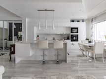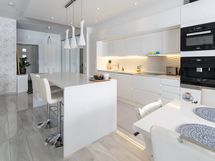 Keittiön varusteet: Jääkaappi, pakastekaappi, integroitu kahvikone, lämpölaatikko, erillisuuni, liesi, astianpesukone, liesituuletin ja mikroaaltouuni. Liesi: Induktioliesi. Työtason materiaali: Kivi. Keittiö remontoitu kokonaisuudessaan 2015.