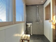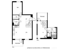 - Pesutilojen kuvaus: Alakerrassa lattia muovi, seinät kaakeli. Yläkerrassa lattiat laattaa ja seinät kaakelia. Varustus: lattialämmitys, suihku, peili. Erillisen WC:n kuvaus: Molemmissa kerroksissa, pesukoneliitäntä alakerran wc:ssä.