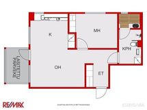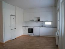 Keittiön varusteet: Jääkaappipakastin, liesi, liesituuletin ja astianpesukone. Liesi: Keraaminen liesi. Työtason materiaali: Laminaatti.
