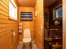 Pesutilojen varusteet: Lattialämmitys, suihku, pesukoneliitäntä ja kiinteät valaisimet. Erillisten WC:n lukumäärä: 2. Erillisen WC:n varusteet: Peilikaappi, pesukoneliitäntä, suihku, suihkuseinä ja lattialämmitys.