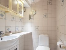 Pesutilojen varusteet: Suihkukaappi, pesukoneliitäntä ja lattialämmitys. Erillisen WC:n varusteet: WC-istuin, pesuallas, allaskaappi ja peilikaappi.