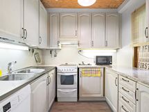 - Jääkaappipakastin, keraaminen liesi, liesituuletin, astianpesukone, kaapistot, irralliset kaapistot, kiinteät valaisimet.