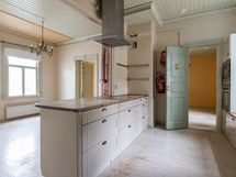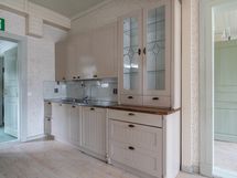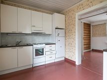 Keittiön varusteet: Liesituuletin, jääkaappipakastin ja liesi. Liesi: muu. Työtason materiaali: Puu.