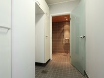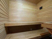 - Varusteet: Sähkökiuas, Lattialämmitys. saunan lauteet, saunapaneeli. Seinämateriaali: Paneeliseinä. Lattiamateriaali: Laattalattia