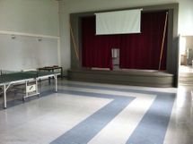 Päärakennuksen 600 m2 tilat ovat kolmessa kerroksessa: alakerrasta löytyy 95 m2 korkea sali näyttämöllä, ruokailusali, keittiö, varastotilat, 2h+k-asunto, erillisellä sisäänkäynnillä.