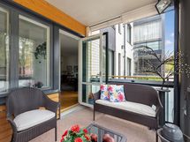 - Lasitettu parveke, parvekkeella infrapunalämmittimet.