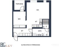 - Pinta-alan peruste: Yhtiöjärjestyksen mukainen. Ei tarkistusmitattu. Pinta-ala voi siis olla edellä mainittua pienempi tai suurempi.