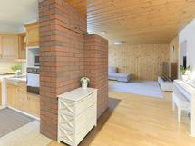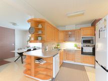 Keittiön varusteet: Jääkaappipakastin, astianpesukone, liesi, liesituuletin ja erillisuuni. Liesi: Keraaminen liesi. leivinuuni.