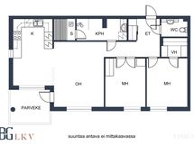 - Pinta-alan peruste: Yhtiöjärjestyksen mukainen. Ei tarkistusmitattu. Pinta-ala voi siis olla edellä mainittua pienempi tai suurempi.