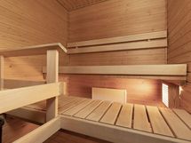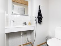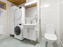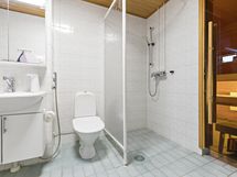 - Sauna, sähkökiuas, kylpyhuone, erillinen wc, suihku, suihkuseinä, peilit, peilikaappi, kaapit, allaskaappi, pesukoneliitäntä, lattialämmitys, kiinteät valaisimet. Alkuperäinen
