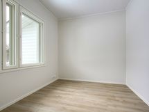 Molemmissa makuuhuoneissa seinät maalattu Tikkurilan valkoisella maalilla ja lattiat viistereunainen vaalea tammilaminaatti. Makuuhuoneissa liukuovelliset peilikaapit.