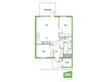Asunnossa on terassi. Osin katettu terassi takapihalla