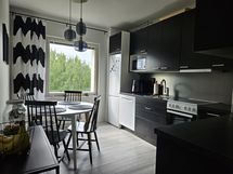- Liesi: keraaminen. Työtasot: laminaatti. Kylmäsäilytys: jääkaappi/pakastin. Varustus: astianpesukone, liesituuletin / suodatin.