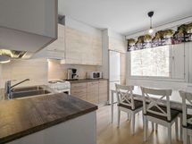 - Jääkaappi/pakastin, sähköliesi, astianpesukone, liesituuletin/ aktiivihiilisuodatin. Keittiökaapistojen ovet vaihdettu v. 2015