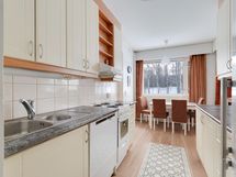 - Varusteet: jääkaappipakastin, astianpesukone, astianpesukoneliitäntä. Työtaso: laminaattitaso. Liesi: keraaminen liesi. keittiö yhdistyy mukavasti olohuoneen kanssa
