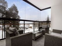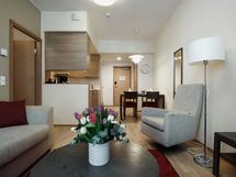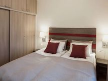 Tasokkaasti ja tyylikkäästi sisustettu huoneisto, jossa makuuhuone, olohuone, keittiö, kylpyhuone ja sauna Käynti ulkokautta kylpylään, harrasteisiin ja ravintoloihin. Noin 100 m päärakennuksesta Lasitettu parveke Vuodepaikat kahdelle sekä levitettävä vuodesohva lisävuoteena kahdelle Maksuton pysäköinti huoneiston edustalla Loppusiivous sisältyy hintaan Vuodevaatteet ja pyyhkeet Keittiössä kodinkoneet, astiasto ja muut keittiövälineet Pyykinpesukone ja -aine Hiustenkuivaaja Ilmalämpöpumppu Silitysvälineet TV Maksuton wifi