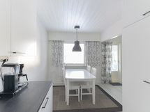 - Keittiön varusteet: Jääkaappipakastin, liesi, liesituuletin ja astianpesukone. Liesi: Induktioliesi. Keittiön kaapinovet uusittu.