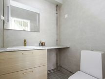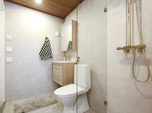- Varusteet: WC, suihku, suihkuseinä, lattialämmitys, kiinteät valaisimet, allaskaappi, peili. Tyylikäs kylpyhuone. WC: Erillinen wc varusteineen alakerrassa palvelee hyvin myös kodinhoitohuoneena. Toinen wc kylpyhuoneen yhteydessä. Varusteet: lattiaan asennettu WC, bidee, lattialämmitys, lattiakaivo, allaskaappi, peili