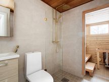 - Varusteet: sähkökiuas, ikkuna ulos, lattialämmitys. Sauna uudenveroinen myös. Seinämateriaali: paneeliseinä. Lattiamateriaali: laattalattia
